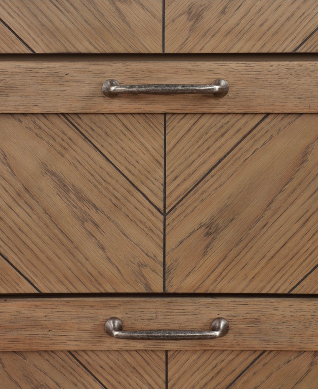• Chevron patterned drawers create a substantial look