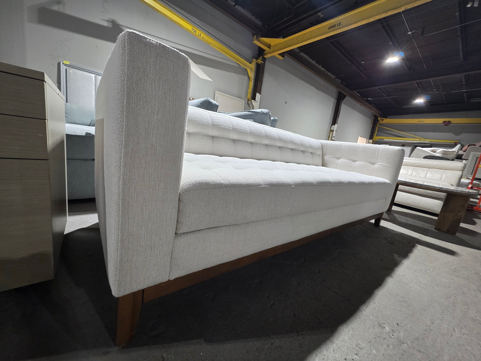 Get supremely luxurious comfort and a timeless yet on-trend look with the Bannard Estate Sofa. It's low-profile silhouette is defined by an open wood base with a rich hazelnut finish, while tailored button-less tufting over textured Chenille upholstery brings fresh mid-century style anywhere.