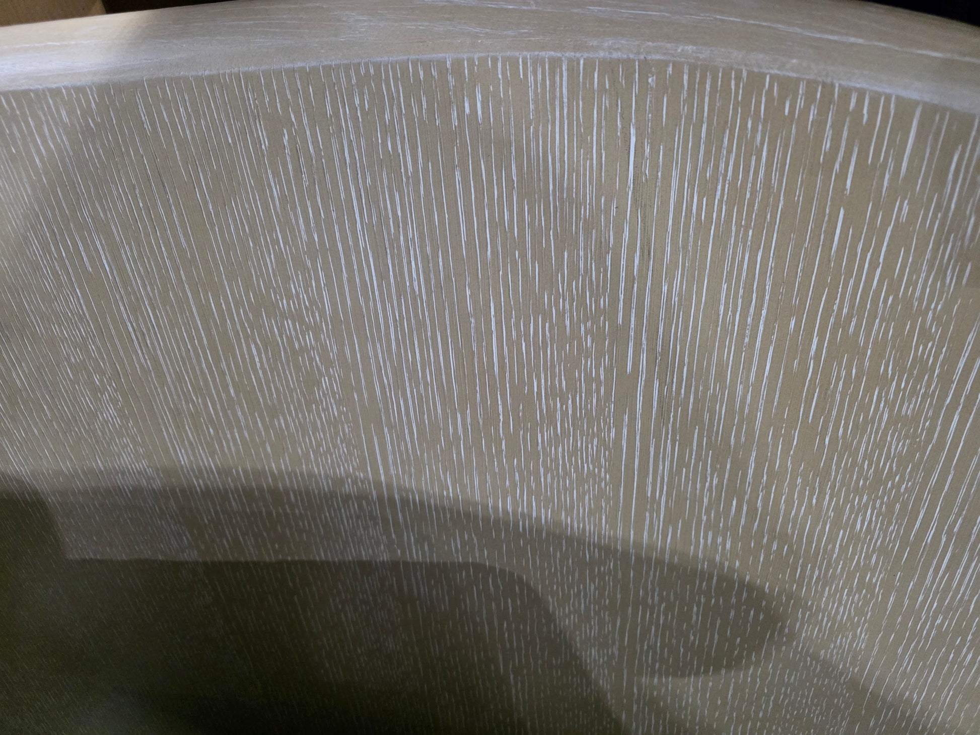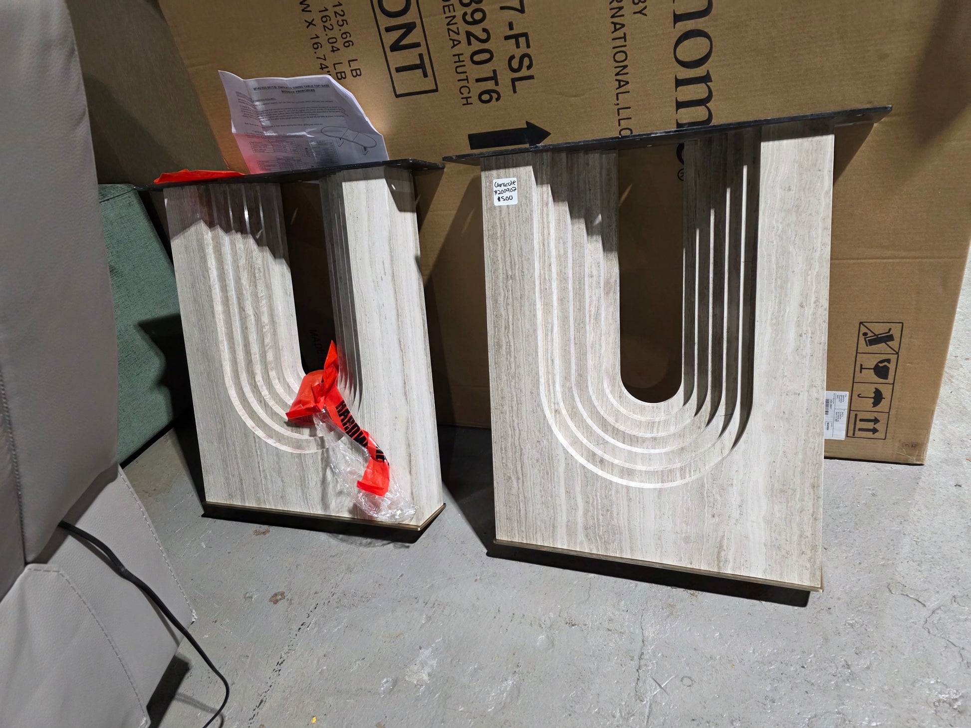 Drawing the eye: parsons-style legs with dramatically stepping arches, meticulously crafted in Silver Travertine stone and trimmed in Lucent Bronze plated metal.