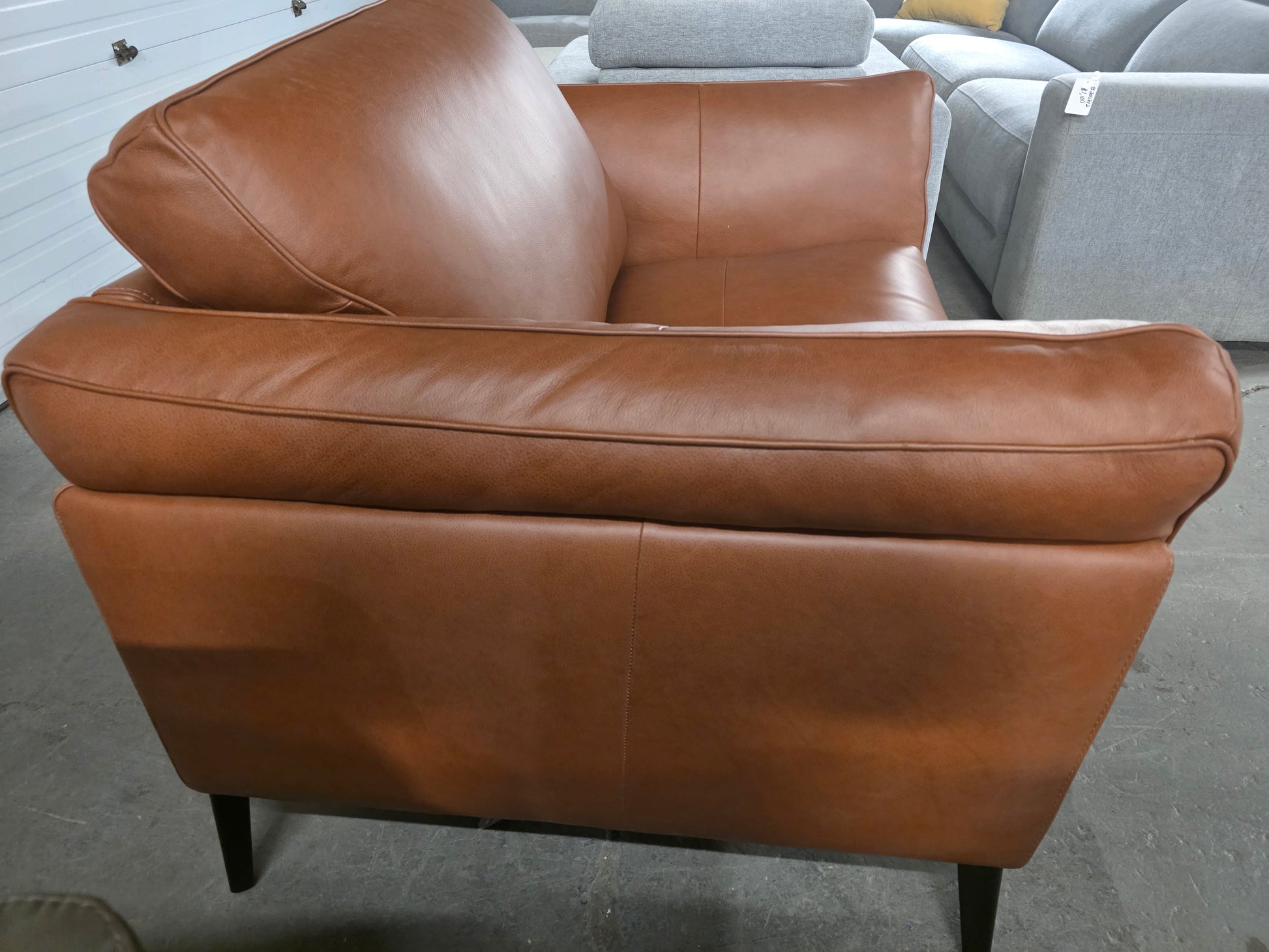 • Hardwood frame with plywood panels; leather upholstery, 1.5mm, semi aniline with a protective finish (split on side and back panels); foam; fiber