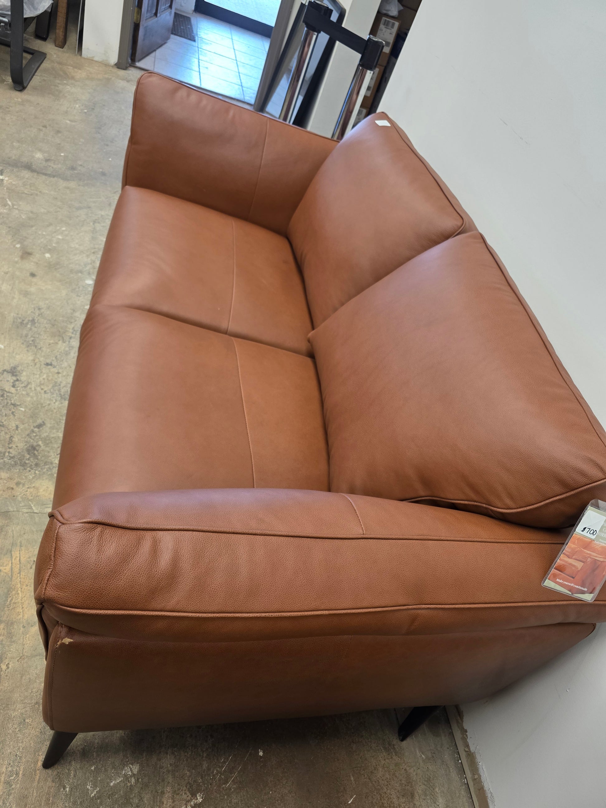 • Hardwood frame with plywood panels; leather upholstery, 1.5mm, semi aniline with a protective finish (split on side and back panels); foam; fiber