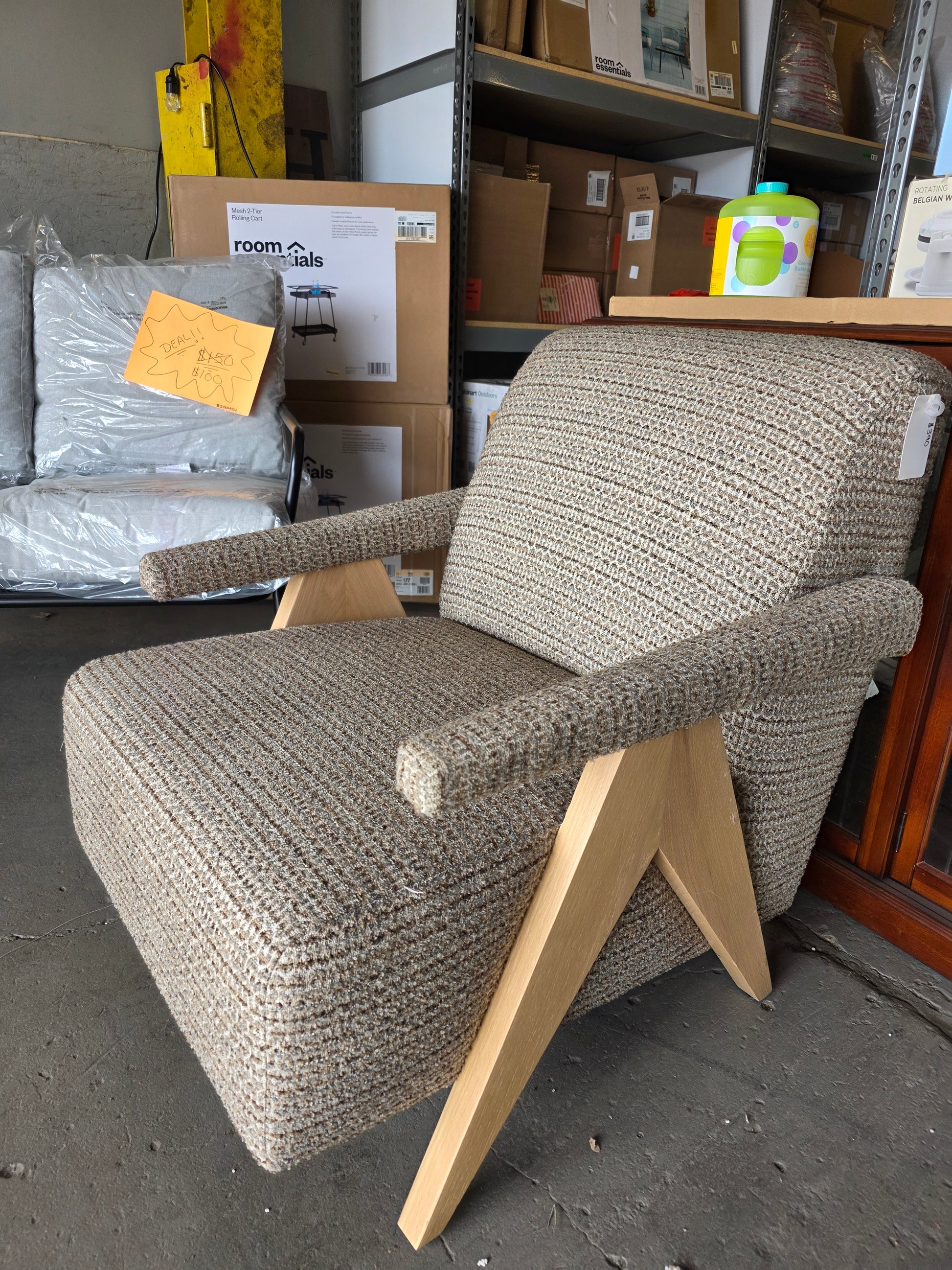 Bring contemporary and minimal design along with exceptional comfort to your home with this retro accent chair. Angular midcentury lines are exemplified by its exposed walnut finish wood frame. Its plush, rich textured upholstered seat and back will make this become your favorite kick-back choice, welcoming a good read or a catch-up night with friends.