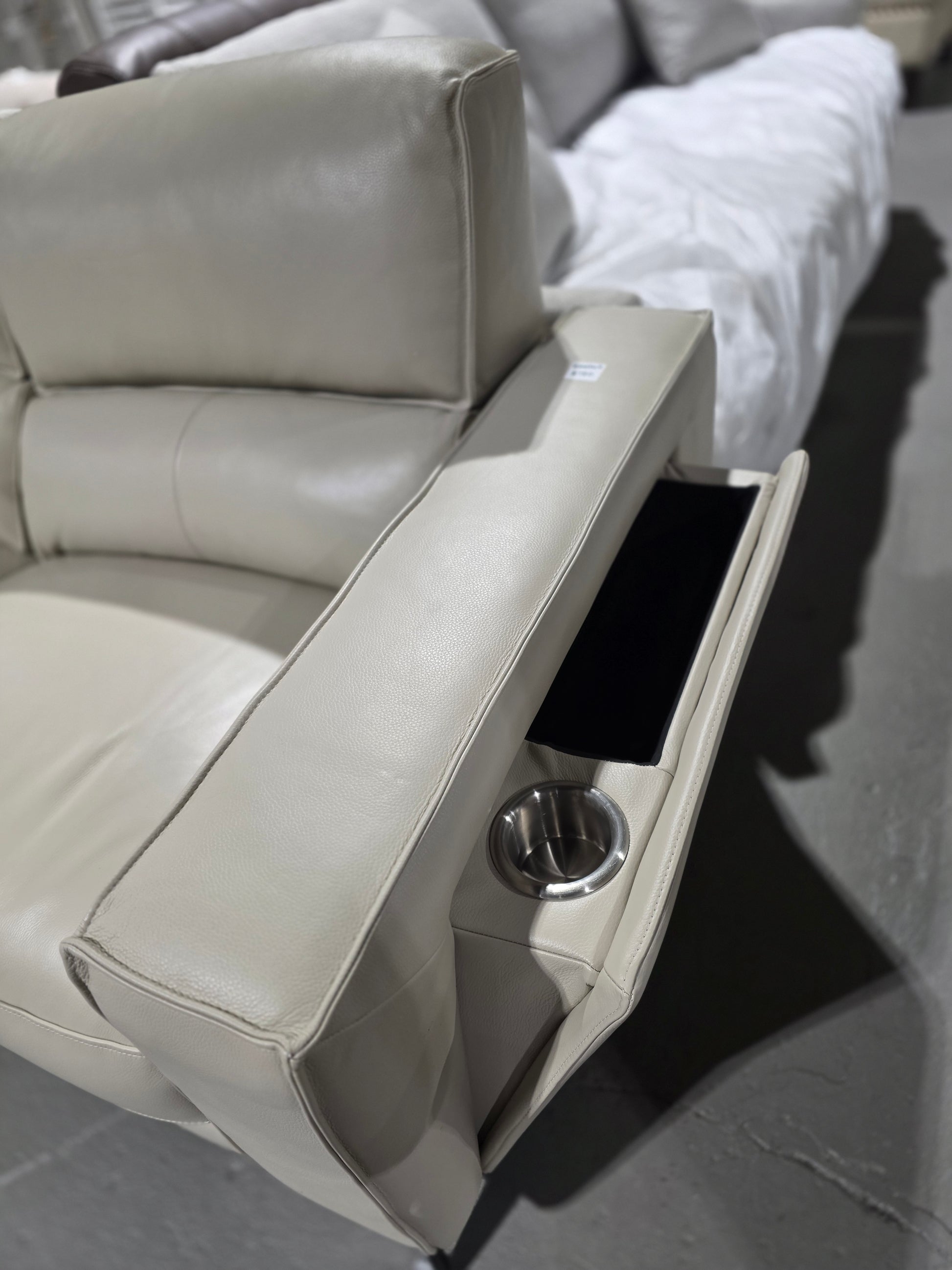 Combining comfort and style, this two-piece leather sofa sectional offers to be the ultimate centerpiece for your living room. Featuring dual power reclining seats with power lift and tilt headrest, you can find the perfect position for relaxation at the push of button. Hidden storage with a cupholder in each arm adds convenience without taking away from the clean contemporary look that is exemplified by its generous proportions, wide track arms and slick metal legs.