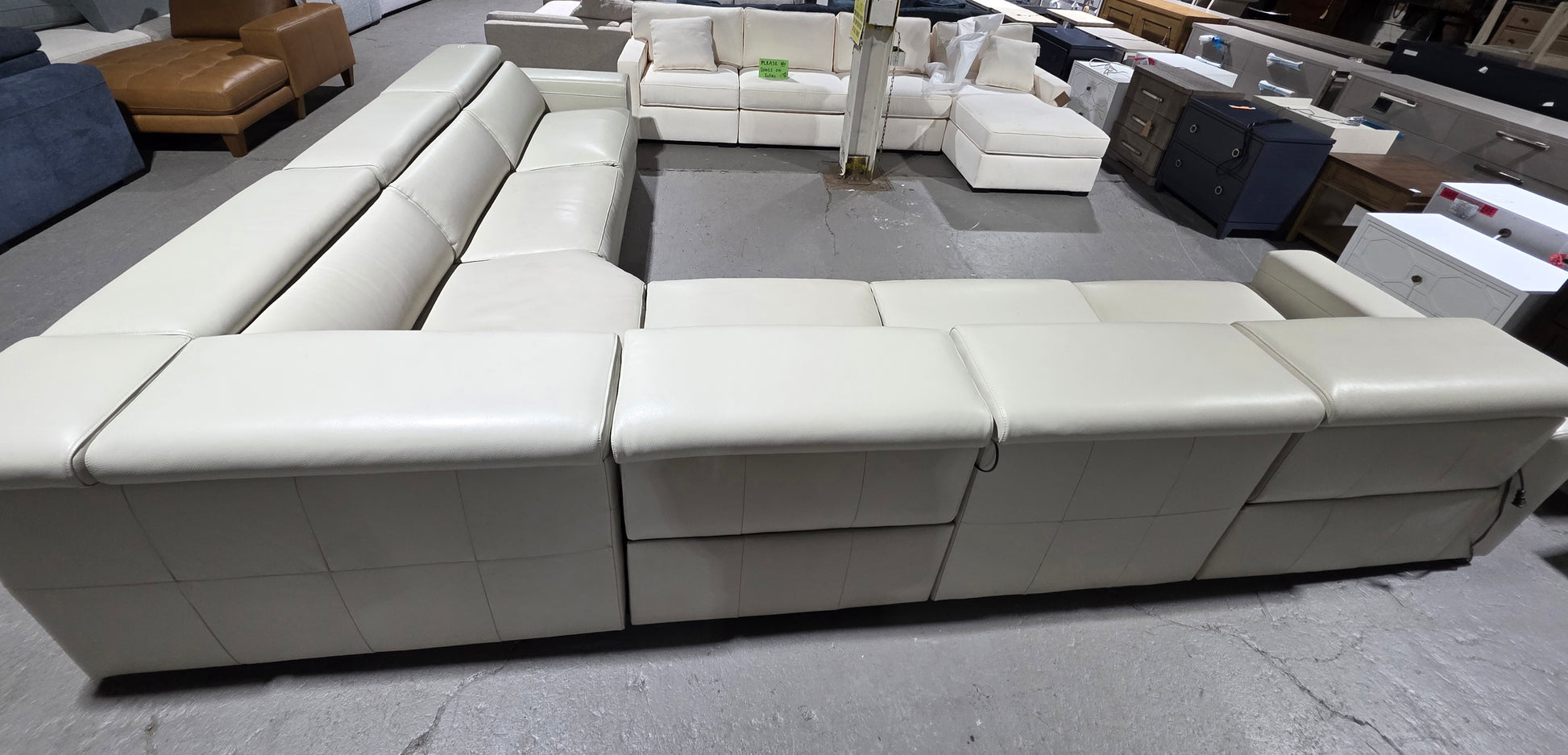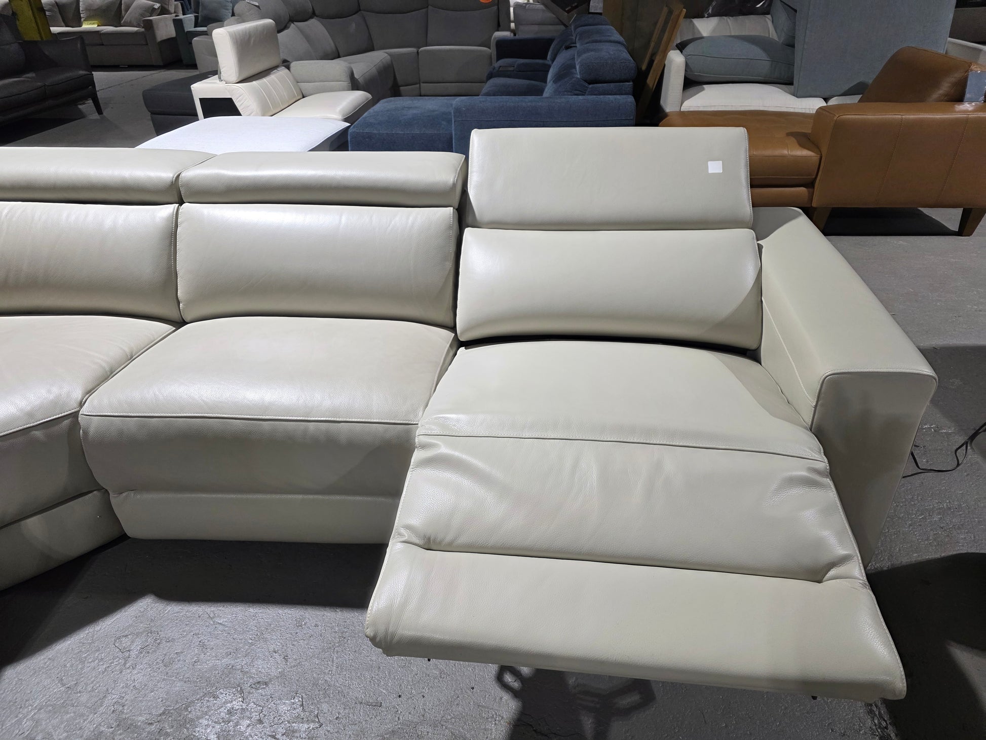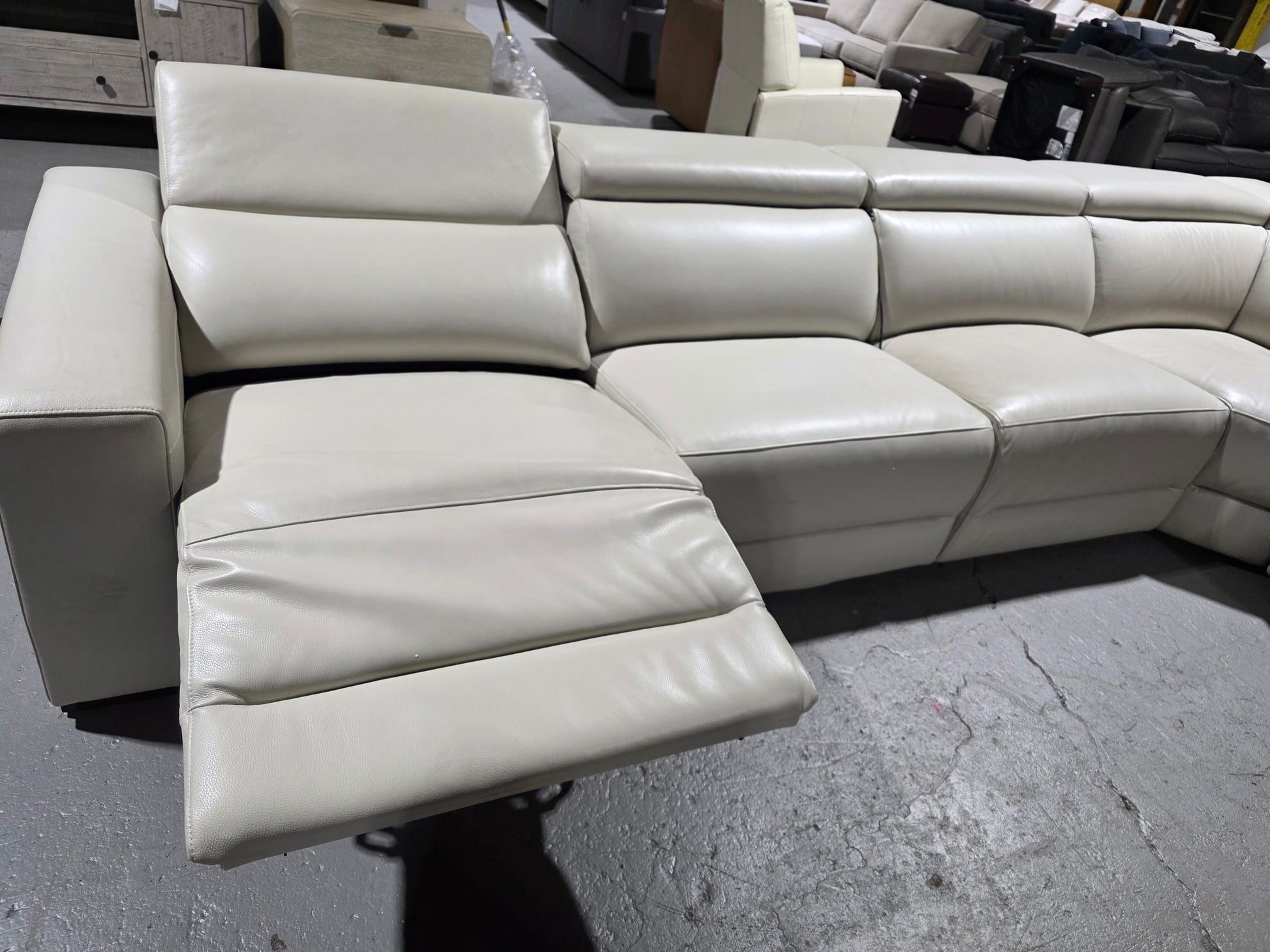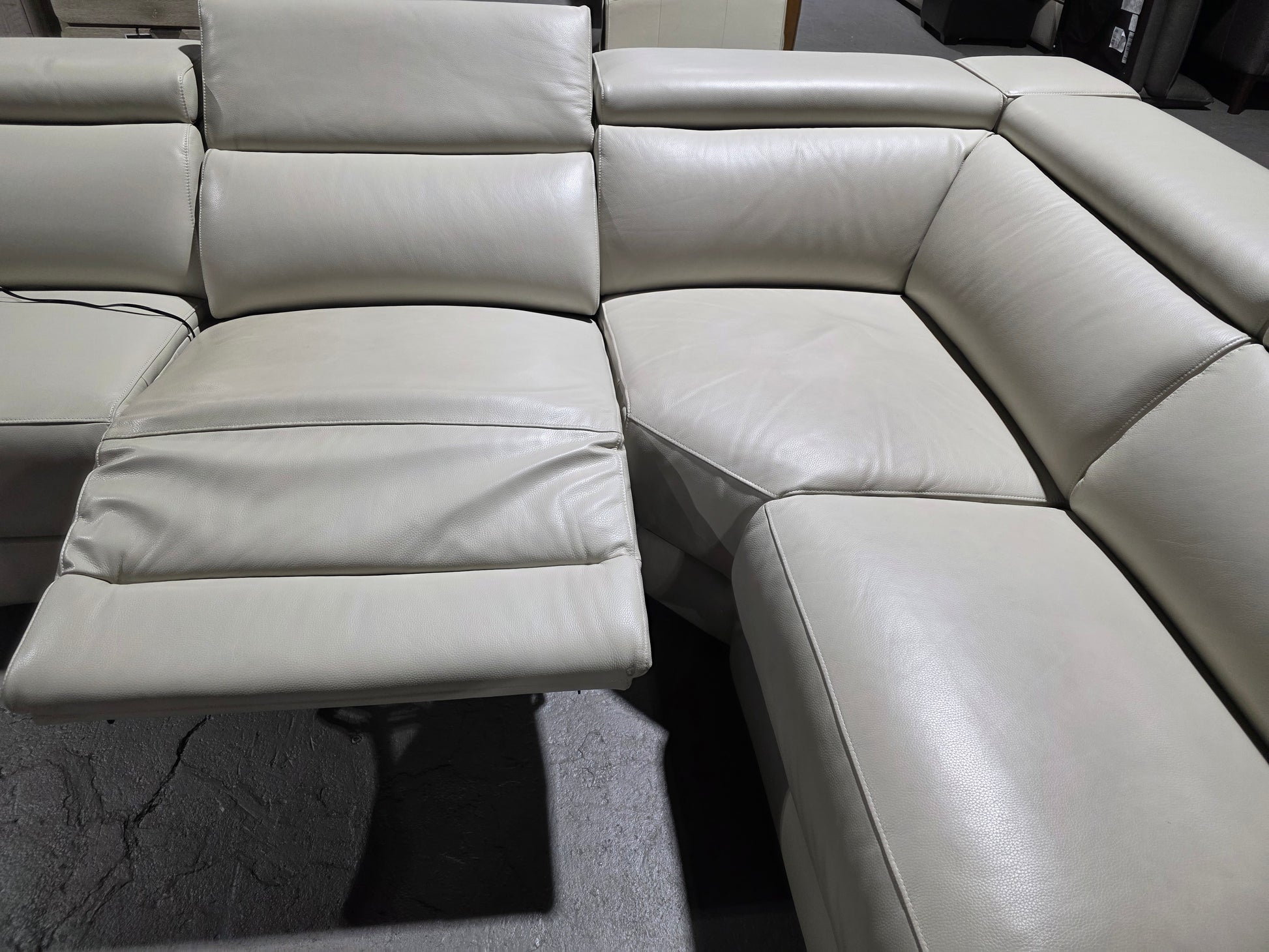 Nevio 6-pc Leather "L" Shaped Sectional Sofa with 3 Power Recliners and Articulating Headrests (Argento Stone)